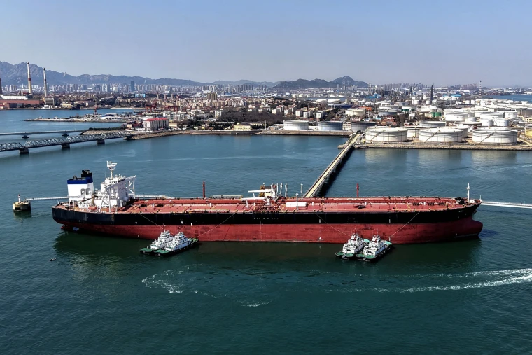 An oil tanker was seen unloading crude at the port in Qingdao, in China’s eastern Shandong province, last week, underscoring how vital these sea routes remain for the Chinese economy.